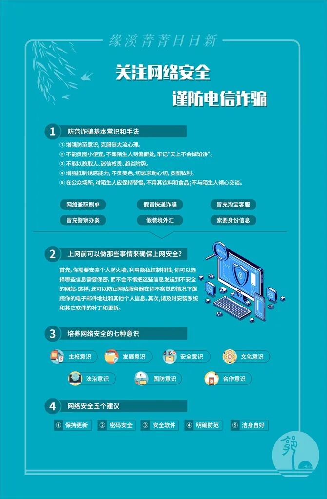 为全面加强网络安全教育工作,增强学生安全意识,新生们在教官老师的指导下学习网络安全教育知识,防止网络电信诈骗发生。教官从多角度宣传网络安全的重要性,提醒学生们谨防电信诈骗,通过举例多种诈骗手段和事实,提高学生的防诈意识,努力促进网上健康文明的道德规范和社会网络文明的良好氛围的形成。为我国的精神文明建设,为社会的健康发展做出自己的贡献!