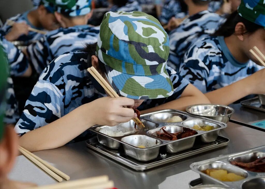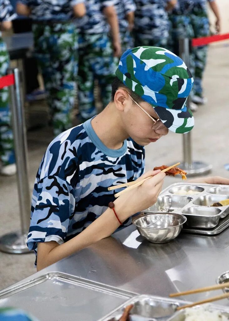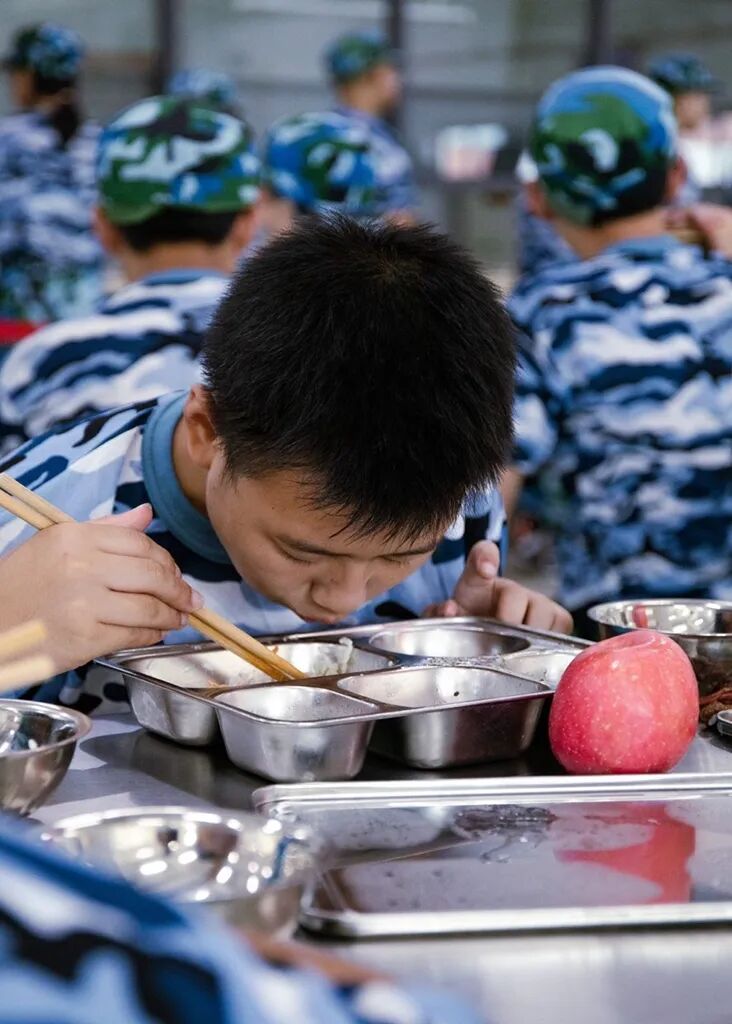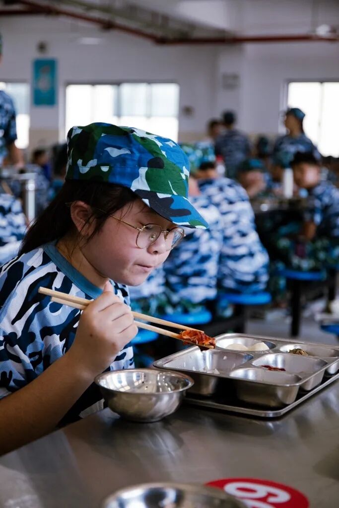 中午,学校实行学生集体用餐的管理方式,开展文明就餐“光盘行动”,倡导学生制止餐饮浪费,弘扬节俭风尚。所有班级在完成早上的训练任务之后,排成整齐的队伍,依次带队到达食堂门口,再次整好队伍,按顺序进入餐厅,按序就坐,整个过程有序、节约、整洁。缘溪学子们在教官和老师的教诲下,不忘身体力行,践行着习近平总书记的谆谆教诲,将光盘行动进行到底。餐后,同学们自觉地将餐盘碗筷轻放至指定位置,整个就餐过程遵守静、净、禁的指令。
