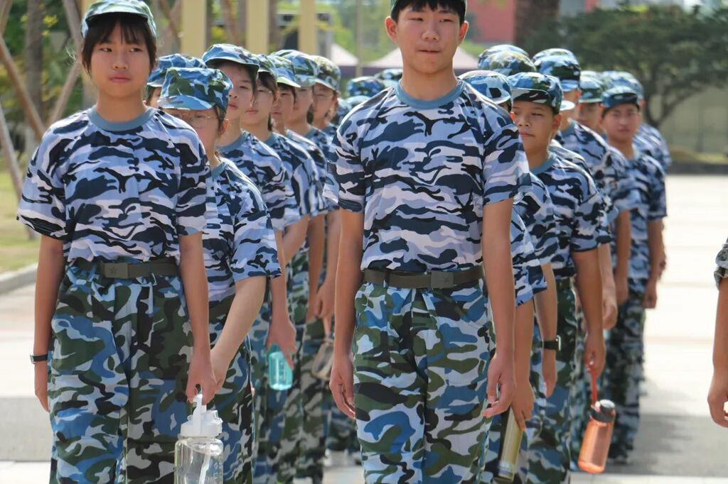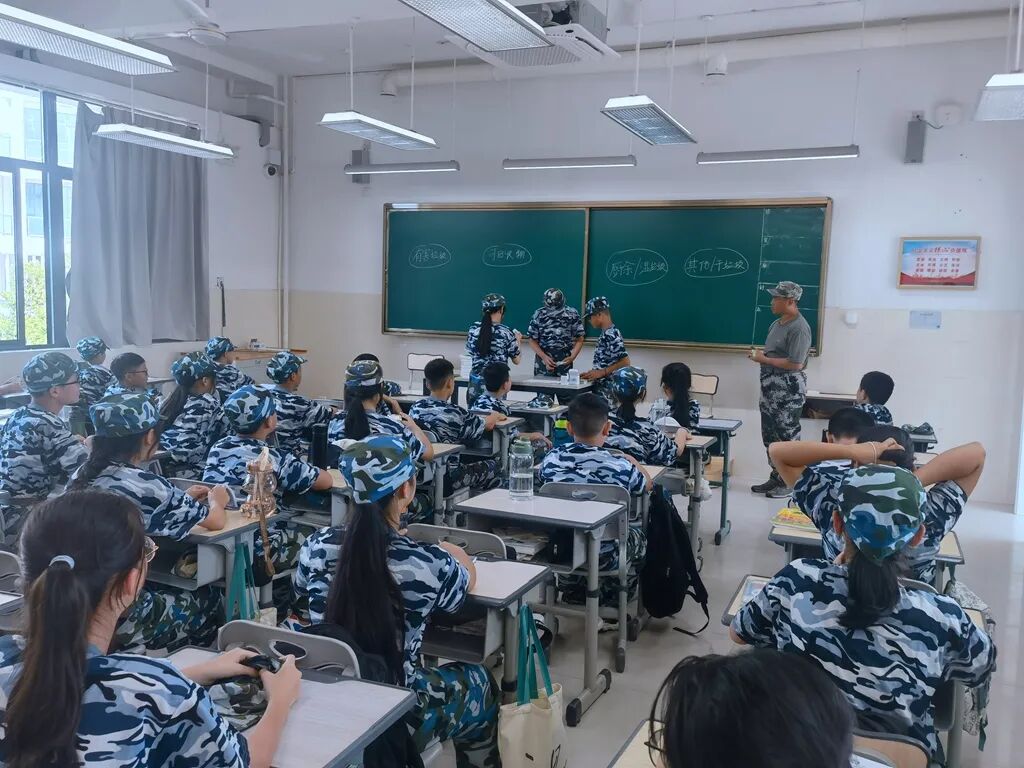 为了让同学们了解接下来的行规教育项目,教官们准备了技能展示。教官们步伐整齐划一,精神饱满昂扬,淋漓尽致地展示了中国军人的风采,令同学们心向往之。最后赵校长在讲话中向全体同学提出了殷切的希望,希望同学们能在接下来的行规训练中挑战自我,听从指挥,百炼成钢。