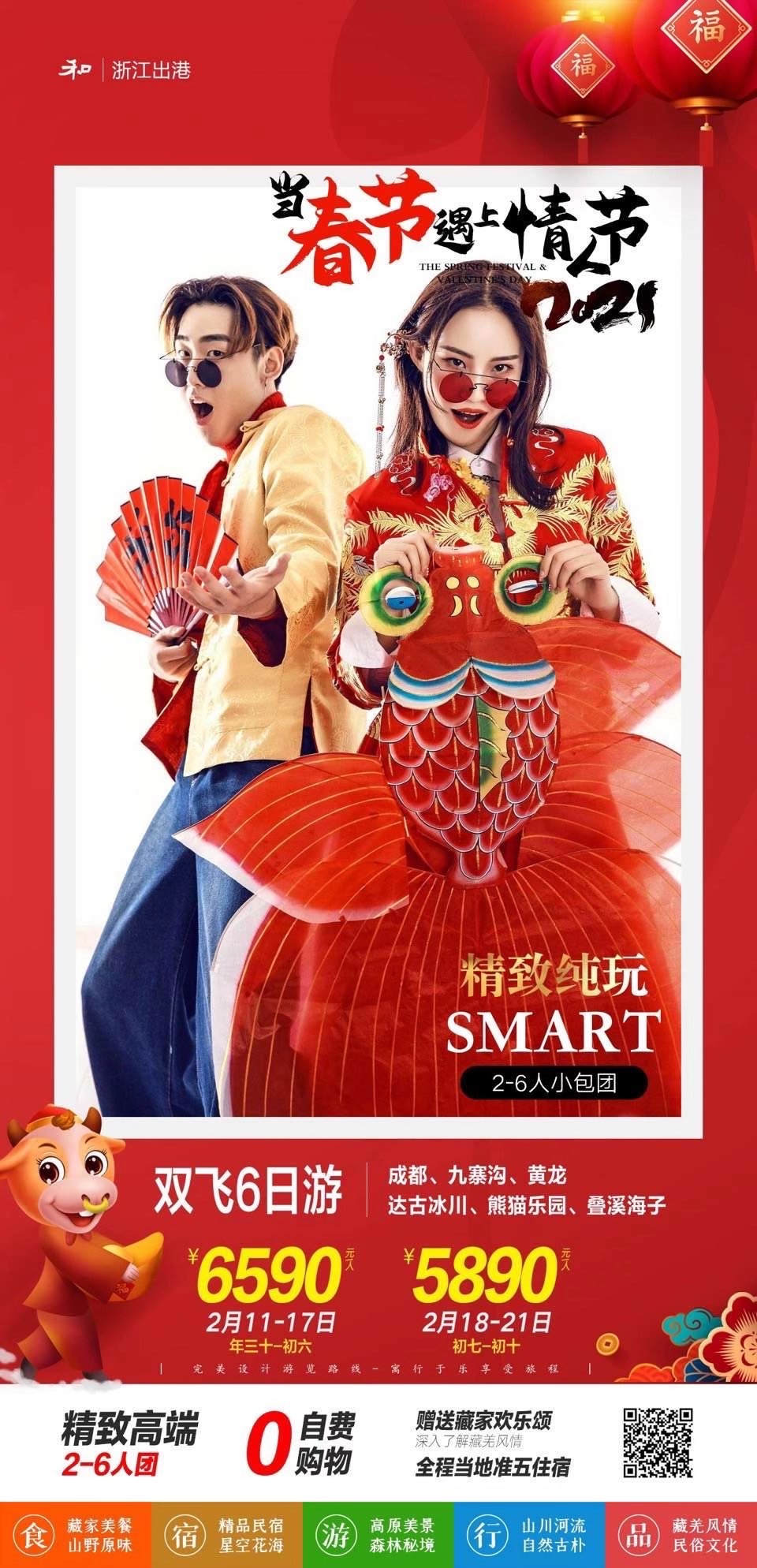 春节特辑【smart小包团-九寨+达古冰川】成都、九寨沟、黄龙、达古冰川、熊猫乐园、叠溪海子双飞6日游