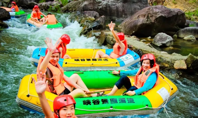 穿梭在蜿蜒曲折的激流危峰间,在惊险刺激中感受峰回路转,顺着山势俯冲,转弯,回旋,在湍急的水道里和浪花搏击,刺激你的神经,让你惊叫连连!